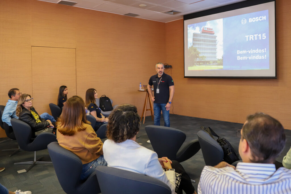 O grupo foi recepcionado e acompanhado pelo gerente jurídico da Bosch em Campinas, Fernando Jacobs, pelo chefe de Recursos Humanos, Fernando Tourinho, e pelo vice-presidente de planta da unidade, Renato Leite, que conduziram os magistrados ao longo da visita, apresentando a estrutura organizacional da empresa, os principais setores e os processos produtivos desenvolvidos na unidade.
